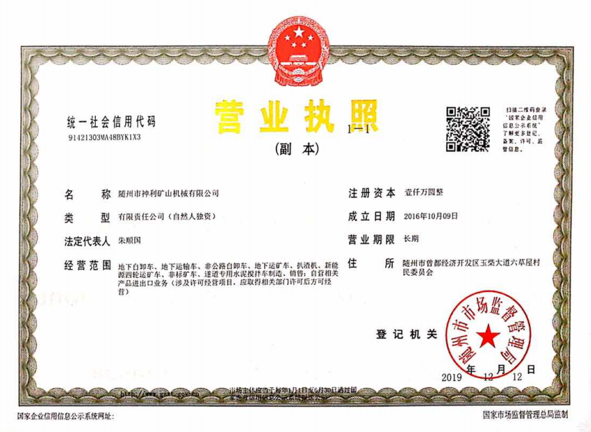 隨州市神利礦山機械有限公司成立于2016年,我司位于隨州市曾都經(jīng)濟開發(fā)區(qū)世紀大道,是一家以礦用運輸車產(chǎn)業(yè)為主,多業(yè)并舉,向集團化方向發(fā)展的綜合型企業(yè)。我司主要生產(chǎn)礦用三輪車、礦用四驅(qū)車、礦用六輪車以及礦用攪拌車等多種礦山機械。